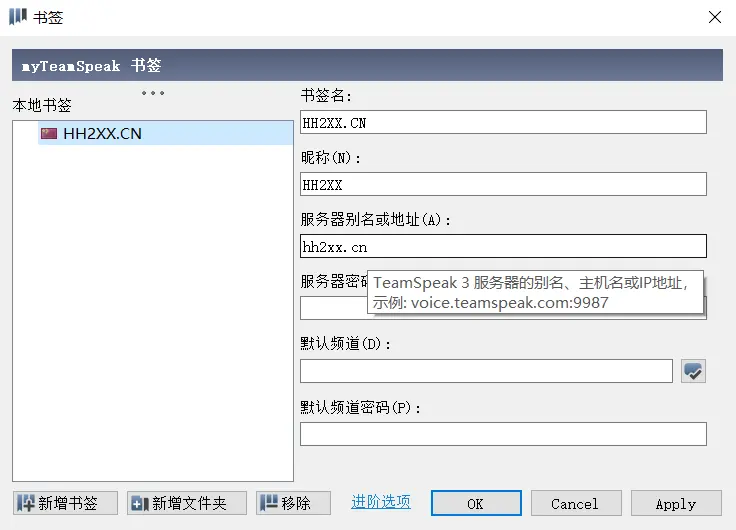 书签-> 选择服务器